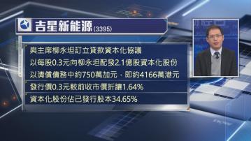 【Now財經台】吉星新能源(03395)今日(3日)開市前公布,透過將股東貸款資本化,去償還債務,以每股0.3元發行2.1億新股,清償約6300萬元的債務,資本化還債不算常見,這次為什麼要用這個方法解決還款問題?