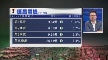 華富建業證券投資策略聯席總監阮子曦表示,德昌本財年收入,每個季度增速一直放慢,單計第三季度只升3.3%,而全年收入指引為中個位數增長,亦較之前預測增長5-7%為低,相信股價短期會有負面反應。