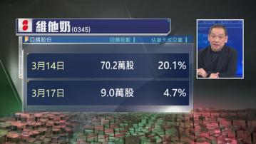 【Now財經台】維他奶(00345)上周五及本周一接連回購股份,是上市以來首輪回購行動。