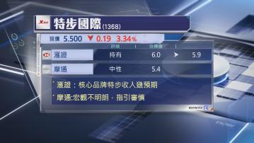 【Now財經台】滙豐證券輕微下調特步國際(01368)目標價,指雖然去年盈利符預期,但核心品牌特步收入僅按年增長約3%,遜預期,雖然管理層預期今年零售環境改善,但指引仍然審慎,亦未為核心特步品牌給予具體目標,滙證將目標價由6元降至5.9元,但維持「持有」評級。