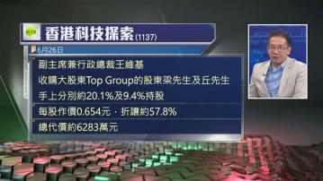 【Now財經台】香港科技探索(01137)行政總裁王維基,增持公司大股東Top Group股權,於Top Group持股將會超過51%。因此觸發對香港科技探索全購,但表示無意私有化。而由於出價只有0.654元,大幅折讓近六成,公司股價今日收市僅升2%。