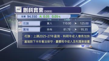 不過,富瑞對下半年看法較保守,主要是關稅因素令部分出貨提前,或令創科下半年收入及利潤率受壓。