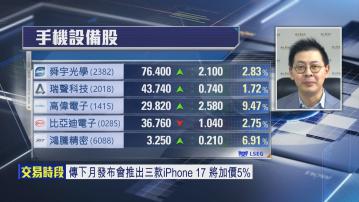 另一方面,Apple加碼投資美國,好大機會獲美國總統特朗普(Donald Trump)「放生」,Apple產品有望獲關稅豁免,刺激港股嘅Apple概念股大升,其中,高偉電子(01415)一度飆13%,高見30.8元,Stanley表示,升勢反映市場對iPhone 17嘅憧憬,不過,建議冇貨嘅投資者,不妨等呢啲Apple概念股放榜後再做部署。