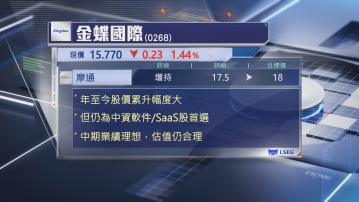 該行指,雖然金蝶股價今年累升逾80%,但仍是中資軟件及SaaS(軟件即服務)股首選,主要是市場看好內地開源式人工智能(AI)發展前景,雖然摩通認為相關發展對推動SaaS財務表現暫時成效不大,但相信樂觀的看法已足以推動市場對板塊長遠增長前景的信心。