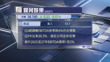 【藍籌業績】銀河娛樂第三季盈經調整EBITDA升逾13%